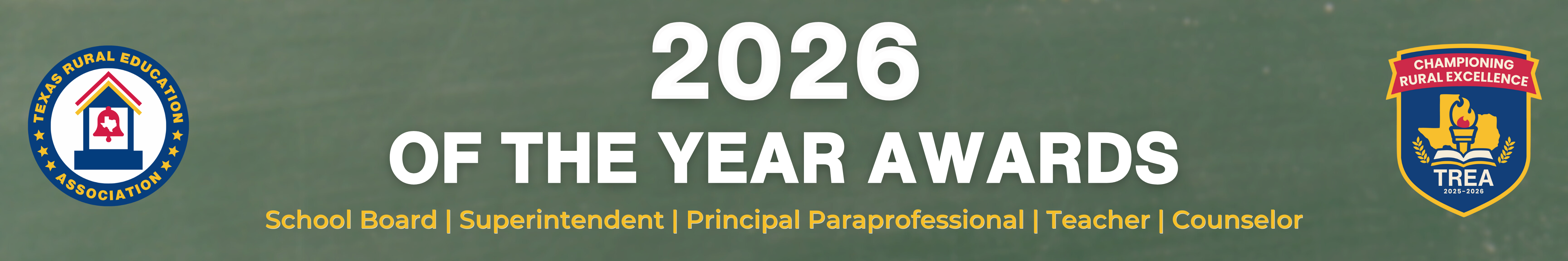 KEY DETAILS Nominations Open: November 17, 2025 Deadline for 2026 Nominations has passed Eligibility: Nominee must be employed by a TREA member district Recognition: Presented during the 2026 TREA Annual Conference Prize: $1,500 stipend for each recipient* *Superintendent and School Board awards provide the $1,500 stipend directly to the school district. |